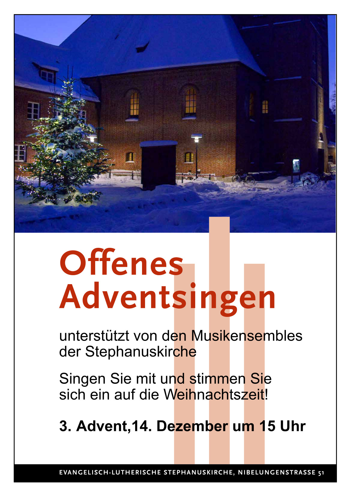 Immer mittwochs in der Stephanuskirche am 3., 10. und 17. Dezember jeweils um 19 Uhr in der Stephanuskirche.