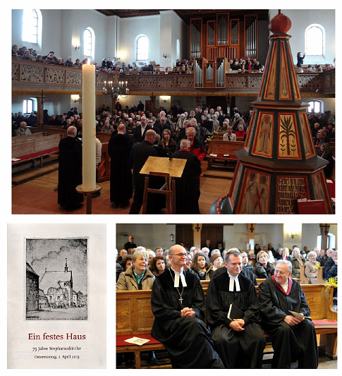 Eine evangelische Kirche ist nicht mehr und nicht weniger als der ausgesonderte Platz, an dem sich die christliche Gemeinde unter dem Wort der Verkündigung zusammenfindet, im Gebet Gott dankt und ihm ihre Sorgen vorträgt, das Abendmahl feiert und ihre neuen Glieder in der Taufe aufnimmt. Ein Ort der Versammlung und Sammlung, an dem nichts ablenken, alles aber zur Verbindung zwischen Mensch und Gott beitragen soll. Betrachtet man unter den genannten Aspekten unsere Stephanuskirche, so dürfen wir dankbar für sie sein. Ein Kirchenbau der dreißiger Jahre des vorigen Jahrhunderts für eine Vorstadtgemeinde in einer traditionsreichen Stadt, einem Ortsteil mit geschichtsträchtigem Namen – die Stephanuskirche besteht hier auf anständigste Weise.